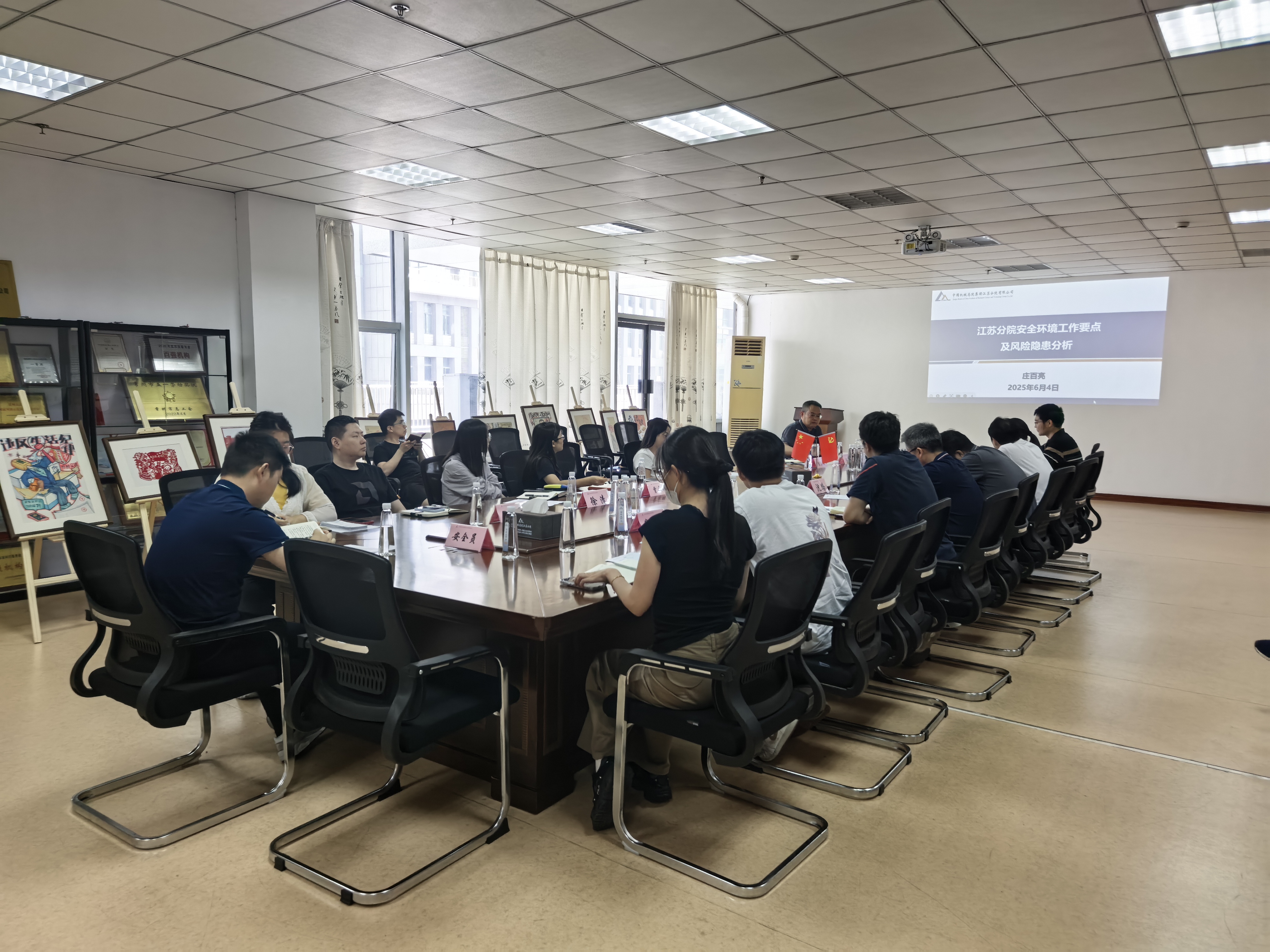 6月4日,江蘇分院以“人人查隱患,環保共守護”為主題,召開2025年“安全生產月”暨“六五環境日”活動啟動會。分院領導班子、各部門負責人及職工代表全員參會,全面部署安全生產與環保工作,強化全員責任意識。